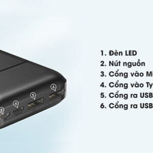 Dung lượng 20000mAh, hỗ trợ sạc 2 thiết bị cùng lúc