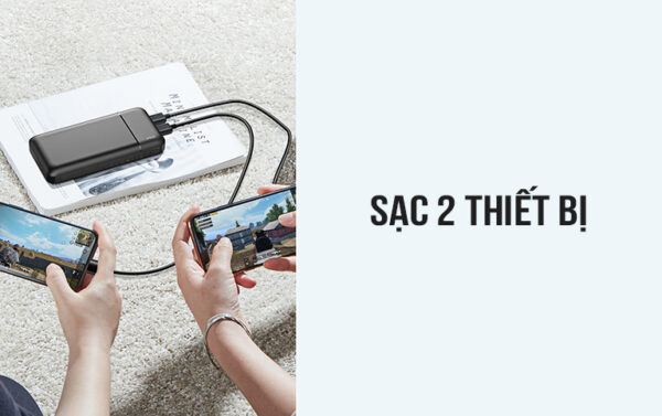Dung lượng 20000mAh, hỗ trợ sạc 2 thiết bị cùng lúc